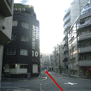 「SOCIAL APARTMENT10」左手に見ながら直進。 |